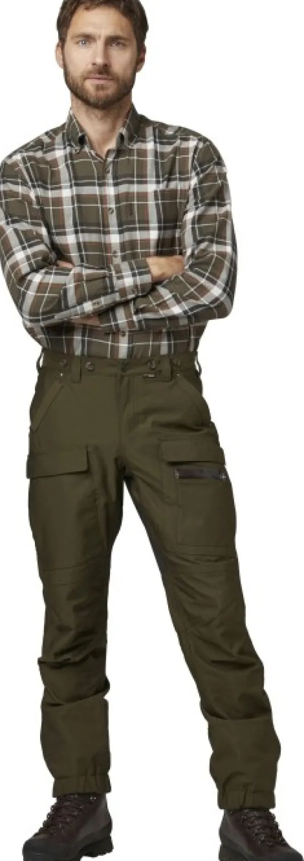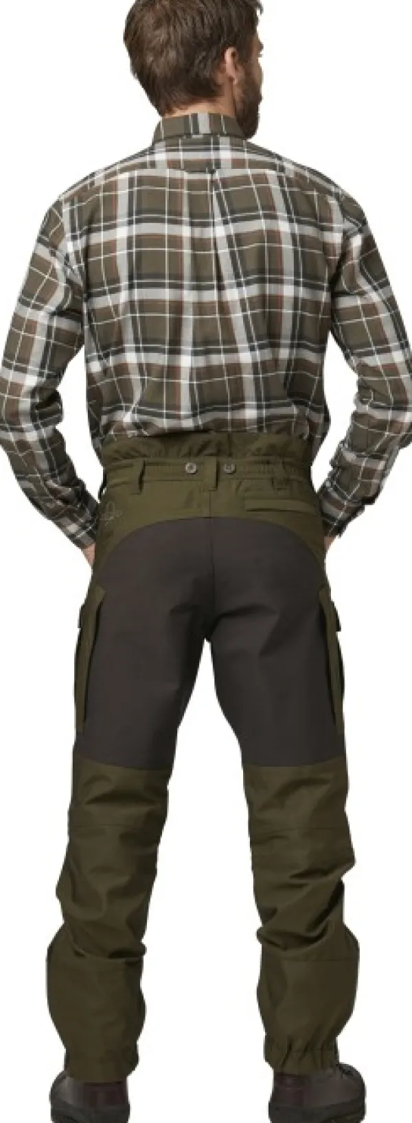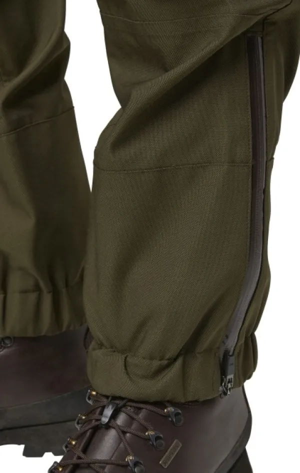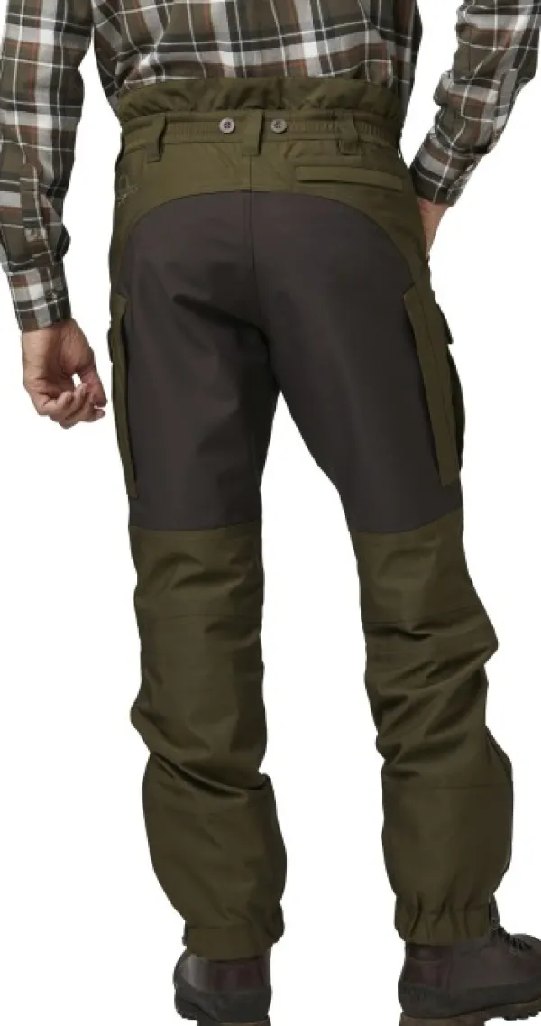Endeavor Pro -metsästyshousuissa on korkea takaosa sekä joustava vyötärö vyölenkeillä ja henkselinapeilla. Muotoon ommellut polvet lisäävät liikkuvuutta, ja vahvistettuja lahkeensuita voi säätää. Nilkoissa olevalla koukulla voi kiinnittää housut saappaisiin.