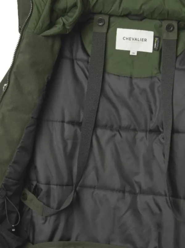 Frost on Chevalierin lämpimin metsästystakki. Se on tukevasti vuorattu ja kehitetty erityisesti vuoden kylmimpiin kuukausiin sekä passijahtiin. Vaate on valmistettu pehmeäksi harjatusta päällyskankaasta, joka on kierrätetty, ja olkapäiden kohdalla on Cordura® ripstop-vahvikkeet.