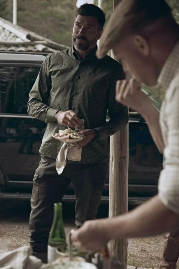 Chevalier Milton on viileästä popliinikankaasta valmistettu tyylikäs miesten kauluspaita. Paidassa on uniikki Chevalier-kuvio tyylitellyillä kukilla, käännetyt, tikatut saumat sekä pyöristetty helma. Kauluksessa on napit, jotka pitävät sen siististi paikallaan. Huomaamattomat napit. Kapea istuvuus.