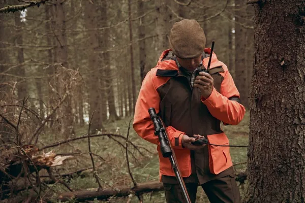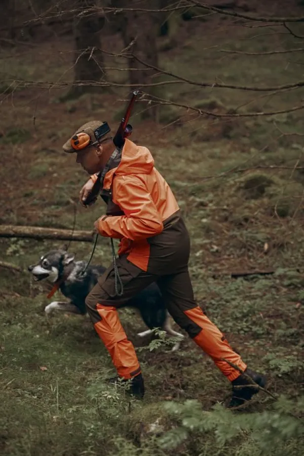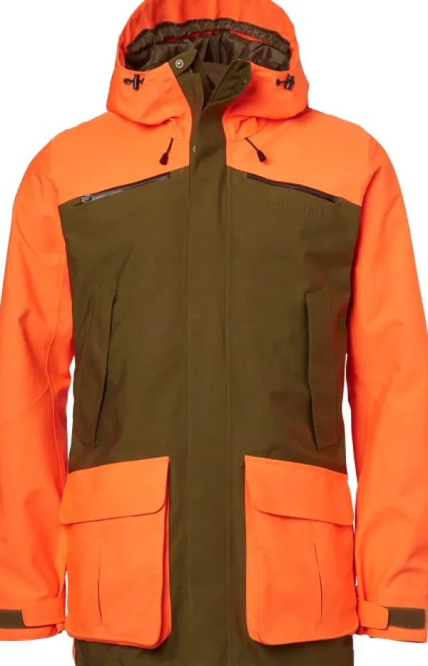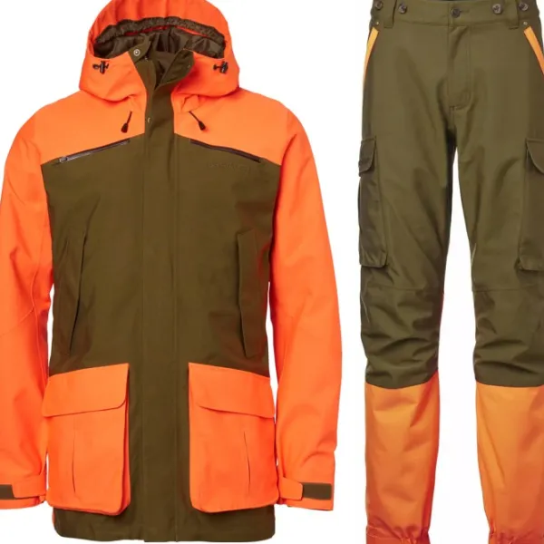 Huomiovärinen jahtipuku, joka palvelee varmasti vuodesta ja vuodenajasta toiseen. Lujan päällikankaan alla hengittävä ja vedenpitävä Chevalite-kalvo pitää käyttäjän kuivana, ja hengittävyyttä voi halutessaan tehostaa kainaloiden tuuletusvetoketjut avaamalla. Taskuja on runsaasti, kuten läppäsulkuiset reisitaskut, kaksi radiotaskua, povitaskut ja fleecevuoratut käsienlämmittelytaskut. Takin päävetoketju aukeaa näppärästi kahteen suuntaan. Runsaat säätömahdollisuudet niin takissa kuin housuissakin.
