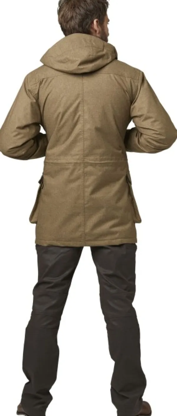 Miesten malli Waterfowlin tyylikkäästä takista. Tämä pidempi takki sopii passiin ajometsästyksessä tai sorsa- ja metsälintumetsästykseen.
