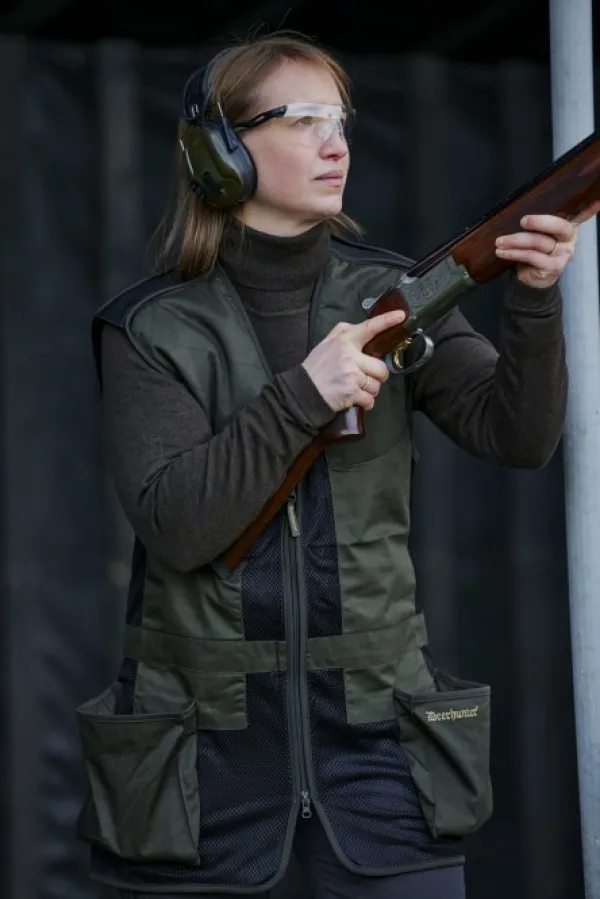 Ampumaliivissä on jousto olkapäillä ja vyötäröllä mukavuuden ja liikkumavapauden takaamiseksi. Liivissä on pehmustetut olka- ja rintasuojat sekä sisäänrakennetut taskut rekyylisuojalle.