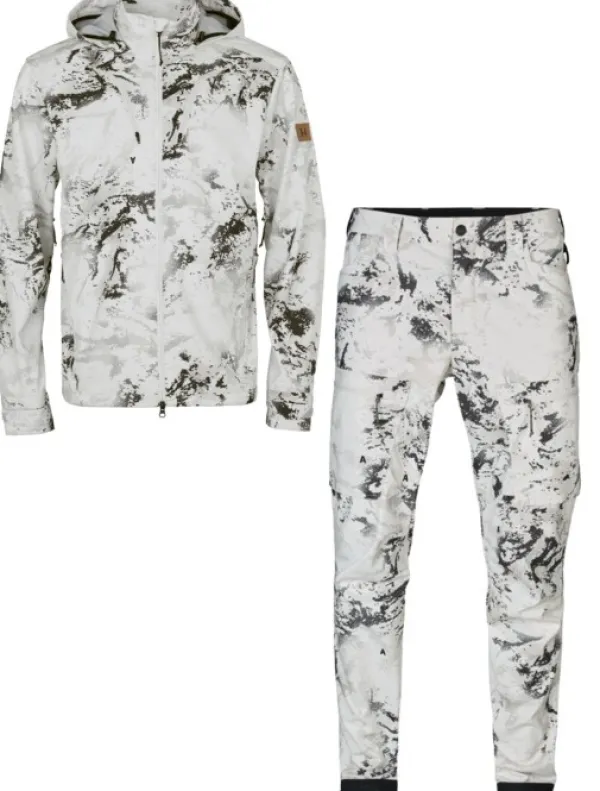 Takki ja housut on naamioitu Härkilän omalla AXIS MSP Snow® -naamiolla, joka on jatkokehitys heidän suositusta AXIS MSP® -naamiosta. Aktiivisen talvimetsästyksen aikana on erityisen tärkeää, että pystyt haihduttamaan mahdollisimman paljon kosteutta kehosta. Härkila on ottanut tämän huomioon. Sen lisäksi, että takissa on kosteutta haihduttava, erittäin hyvin hengittävä ja siinä on sisäinen verkkovuori, joka tarjoaa paremman ilmankierron. Takissa on pitkät tuuletusaukot vetoketjulla hihojen alla. Lisäksi takki on saanut likaa ja vettä hylkivän DWR-käsittelyn.