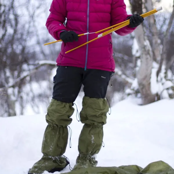 Helsport Footbags -kengänpäälliset ovat kuorijalkineet, jotka voit vetää kenkien päälle, kun pystytät teltan syvään lumeen. Kengänpäällisten istuvuus on helposti säädettävissä, ja ne sopivat yhteen kaikentyyppisten kenkien kanssa. Footbags-kuoripäällisiä voi käyttää myös ilman kenkiä esimerkiksi käydessäsi ulkona teltasta, jolloin sinun ei tarvitse pukea kenkiä. Helsport Footbags -kengänpäälliset on valmistettu hyvin hengittävästä puuvillamateriaalista, ja niissä on kestävät ja vesitiiviit, luistamattomasta materiaalista valmistetut pohjat.