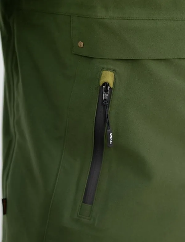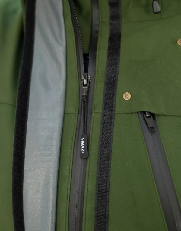 Edessä on iso läpällinen kengurutasku ja sivuilla vetoketjulliset käsienlämmitintaskut, ja tietysti anorakkiin kuuluu myös legendaarinen ja säädettävä Swazi-huppu.