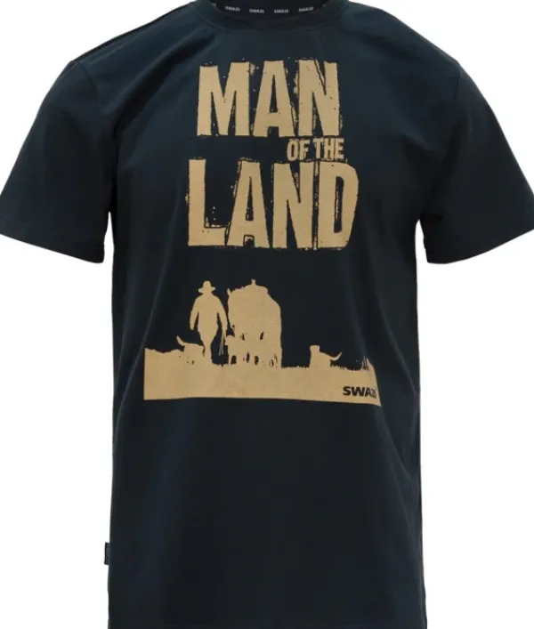 Vanha klassikko on palannut. Ikoninen Swazi Man of the Land -t-paita 90-luvulta on jälleen saatavilla Swazin valikoimassa. Nyt uudistettuna puuvillan ja polyesterin kudotulla sekoituksella, joka tarjoaa ensiluokkaista mukavuutta.