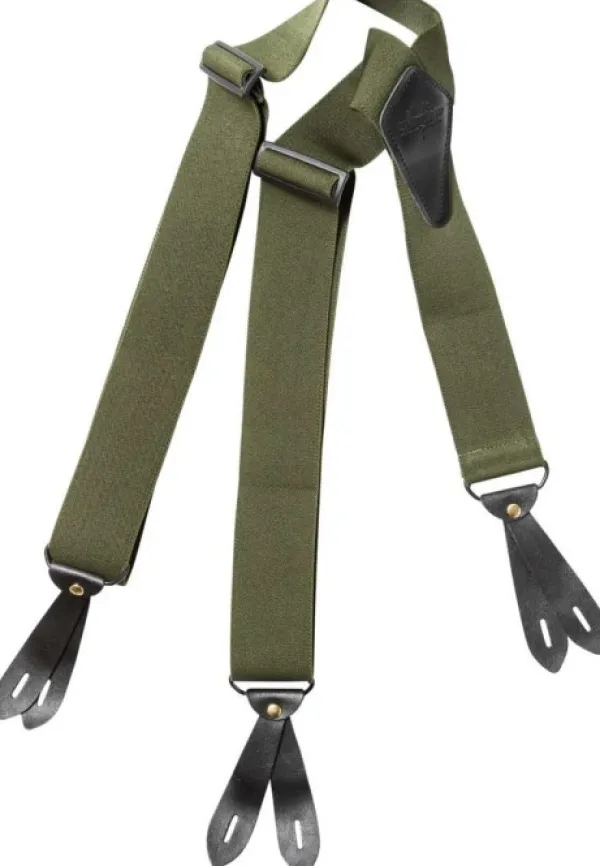 Nahkalenkeillä varustetut Swedteam-henkselit, jotka on valmistettu lujasta polyesteristä. Pituus on säädettävä ja hihnan leveys 50 mm.