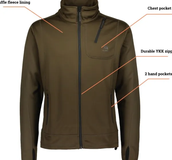 Alaska Juneau-takki on valmistettu miellyttävän pehmeästä ja hiljaisesta Powerfleece-materiaalista. Takin valmistuksessa on hyödynnetty ThermoDry-teknologiaa, joka ehkäisee lämmön haihtumista ja suojaa tehokkaasti kylmältä. Takin korkea kaulus antaa lisäsuojaa tuulelta. Rinta- ja sivutaskuissa on vetoketjut ja hihoissa peukalolenkit. Alaska Juneau-fleecetakki sopii hyvin vapaa-aikaan tai metsästykseen.
