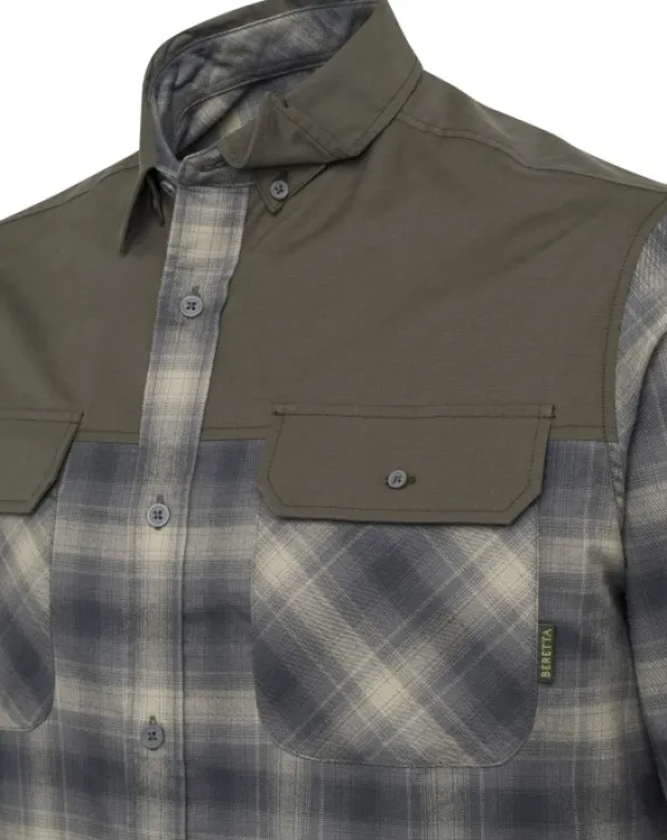 Beretta Outpost metsästyspaita miehille on normaalilla istuvuudella ja valmistettu kierrätetyn polyesterin ja elastaanin sekoituksesta. Tämä klassisen tyylikäs miesten paita on lisäksi varustettu kaksoiskangasvahvikkeilla olkapäillä, niskassa ja kyynärpäissä sekä tyylikkäällä paikkataskulla molemmissa rintataskuissa.