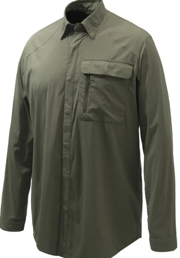 Kevyestä ja hengittävästä materiaalista valmistetussa Beretta Storm -paidassa on verkkokankaiset osiot lisäämässä ilmanvaihtoa. Lisäksi paita on käsitelty UV-säteitä torjuvaksi. Paidassa on piilotettu nappilista, kaksi rintataskua sekä toisessa hihassa Berettan logo.