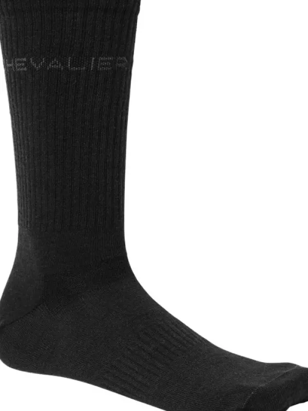 Chevalierin metsästyssukat, joissa korkeahko varsi ja hiertämättömät, ohuet saumat. Väri: musta.