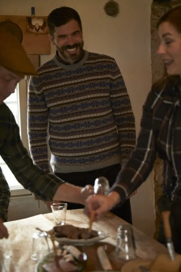 Chevalier Moss Sweater on lämmin jakardineulottu miesten paita hienosta villasekoituksesta. Villa on erittäin lämmin ja miellyttävä materiaali talven kylmille kuukausille, ja se toimii hyvin sellaisenaan tai lämmittävänä välikerroksena ulkoillessa. Paidassa on Chevalierin oma kuosi, joka perustuu perinteiseen ruotsalaiseen neulekuosiin. Valmistettu rajoitettu erä.