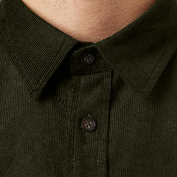Kaldfjord-paita on valmistettu pehmeästä ja kestävästä vakosamettikankaasta. Kangas on valmistettu puuvillasta ja elastaanista, mikä tekee paidasta joustavan. Tiukka istuvuus ja pehmeä kangas tekevät paidasta mukavan päällä. Paidassa on klassinen nappikiinnitys ja rintatasku.