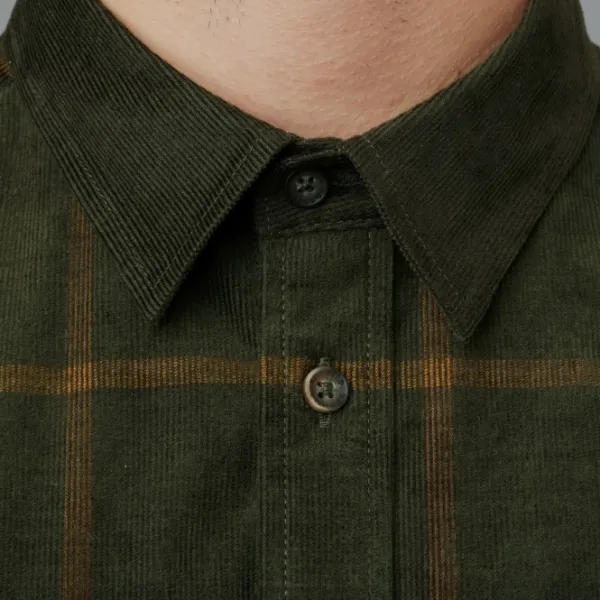 Kaldfjord-paita on valmistettu pehmeästä ja kestävästä vakosamettikankaasta. Kangas on valmistettu puuvillasta ja elastaanista, mikä tekee paidasta joustavan. Tiukka istuvuus ja pehmeä kangas tekevät paidasta mukavan päällä. Paidassa on klassinen nappikiinnitys ja rintatasku.