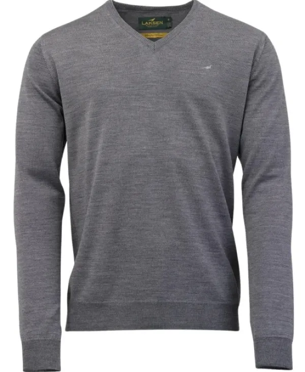 Laksen Sussex V-Neck on pusero, joka on valmistettu 100 % erittäin hienosta italialaisesta merinovillasta, joka on pehmeää ja lähes kutittamatonta.
