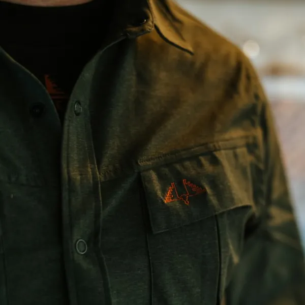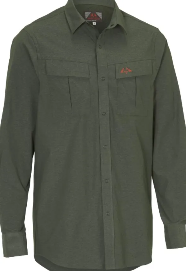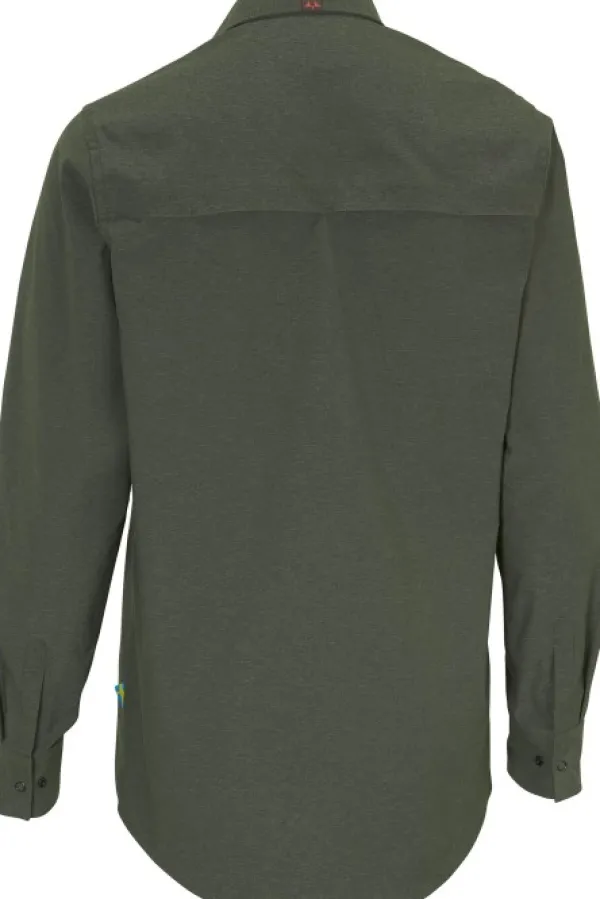 Monikäyttöinen joustava paita. Paidassa on pystykaulus, painonapit edessä sekä säädettävät hihansuut. Kaksi rintataskua, joista toisessa on kirjailtu logo. Hengittävä paneeli takana.